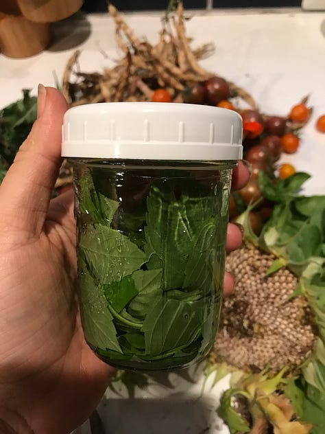 Mint sustains us. It grows abundantly and reliably. It’s a tasty herb, makes a refreshing tea, and a healing tincture. It flowers for pollinators, keeps mosquitos and ticks away, and withstands chickens. The strong smell of mint is the most pleasant, cool, and sweet notes you can possibly imagine as we tromp through our overgrown paths. Mint is in every pot and along every edge. Mint helped transform our property from a scary, condemned shack into a functional farm.